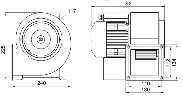 Вентилятор комплектується одно- і трифазними асинхронними двигунами з напругою живлення мережі 230 В - 50 Гц і 400 В - 50 Гц відповідно.