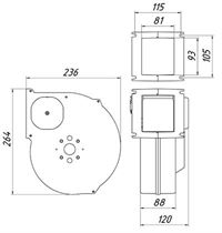 Вентилятор Elmotech VFS-160-2E-A-1 - аналог вентилятора WPA 160 Вентилятор наддуву VFS-160 призначається для подачі повітря в топку твердопаливного котла центрального опалення. Плавне регулювання обертів за допомогою контролерів за заданою температурою. Вентилятор наддуву Elmotech VFS-160 також може використовуватися для вентиляції приміщень і обладнання. Працює за температури навколишнього середовища від -25 до +50°С. Конструкція вентилятора - складається з двох частин: алюмінієвий корпус, який кріпиться до зовнішнього ротора двигуна. Крильчатка виготовлена з алюмінієвого сплаву і кріпиться безпосередньо до валу двигуна. Вхідний отвір захищений сіткою. Випускний отвір закінчується фланцем з отворами для кріплення.