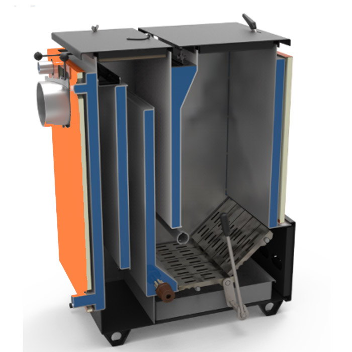 - Стінки та газоходи виготовлені з високоякісної котлової сталі товщиною 4 мм та охолоджуються водою.