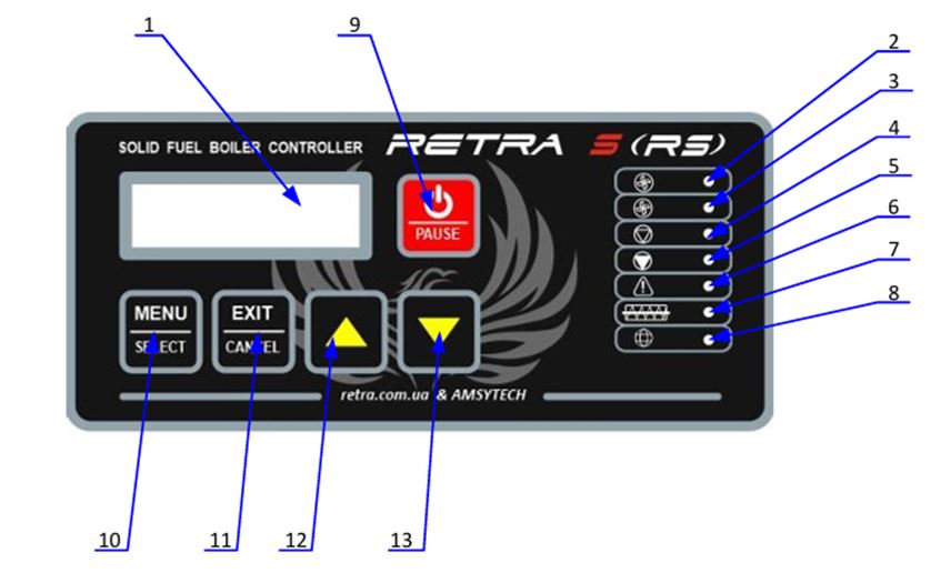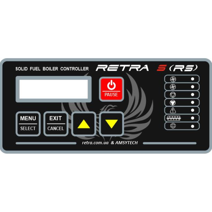 Пульт керування твердопаливним котлом RETRA S (RS) призначений для керування роботою твердопаливних котлів із шнековою подачею палива. Під час роботи пульт вимірює температуру теплоносія на виході котла та на звороті, а також температуру шнекової системи подачі палива. Контроль температури здійснюється за допомогою датчиків температури, що входять в комплект пристрою. На основі заданих параметрів роботи та отриманої від датчиків інформації пульт керує роботою насосів циркуляції та рециркуляції,  вентиляторів та подачею палива в котел.