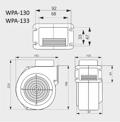 Вентилятор M+M WPA 130 призначений для подачі повітря в топку опалювальних котлів. Він також може бути використаний для вентиляції приміщення і технологічного обладнання. Вентилятор може працювати при температурі навколишнього середовища від 0 до 40 °C.